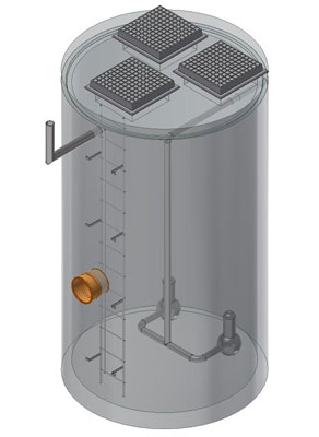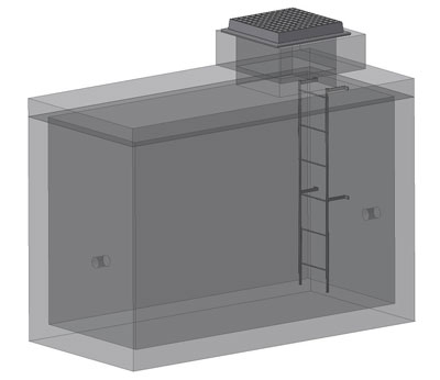 <p>Železobetónová nádrž sa využíva ako šachta, do ktorej je možné zabudovať rôzne technologické vystrojenia, ako sú ventily, meradlá na prietok vody, AT stanice a podobne. Šachta môže byť doplnená vstupným rebríkom alebo poplastovanými stúpadlami podľa požiadavky odberateľa.</p>